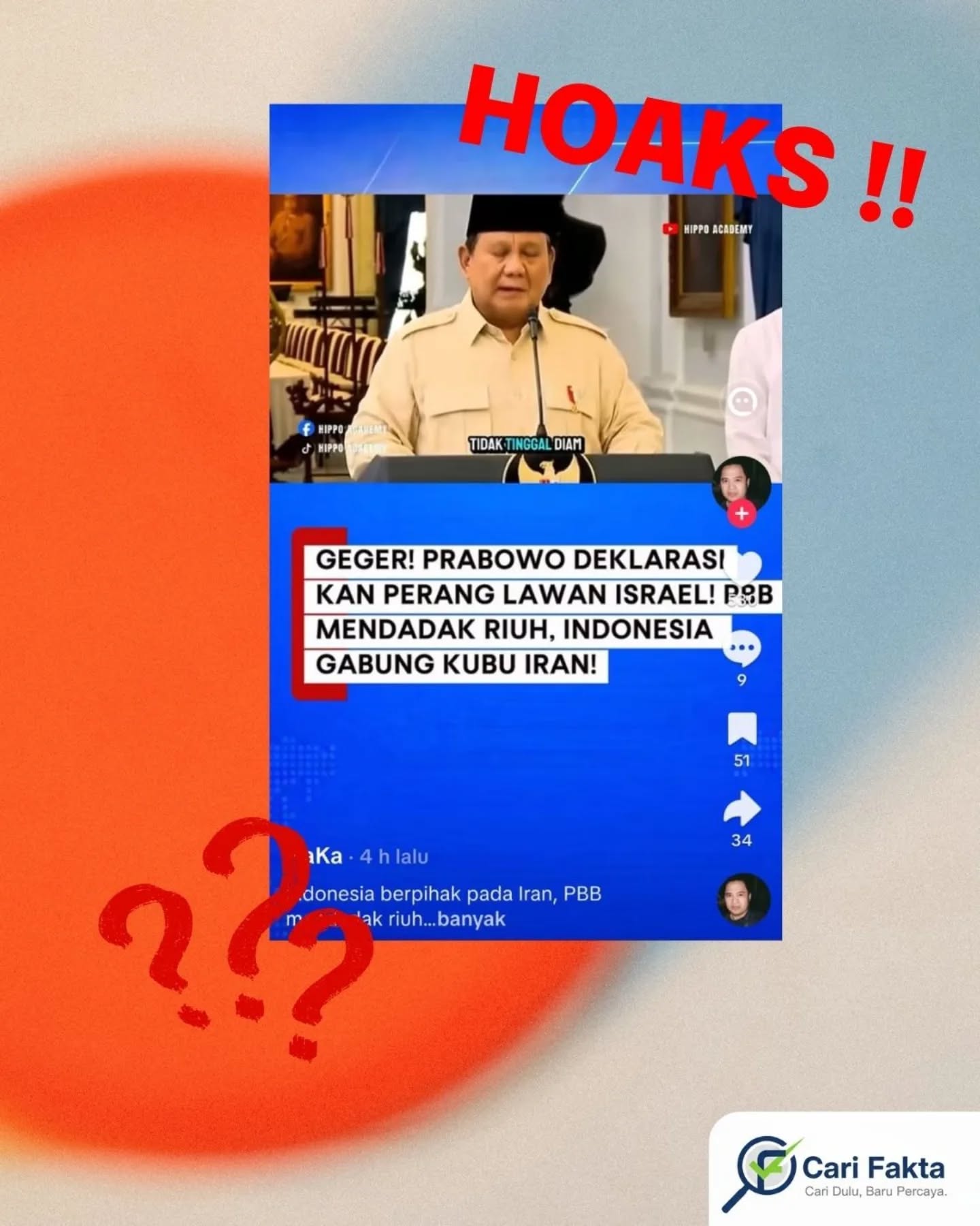 Hoaks! residen Prabowo Subianto telah mendeklarasikan perang terhadap Israel. carifakta April 12, 2026